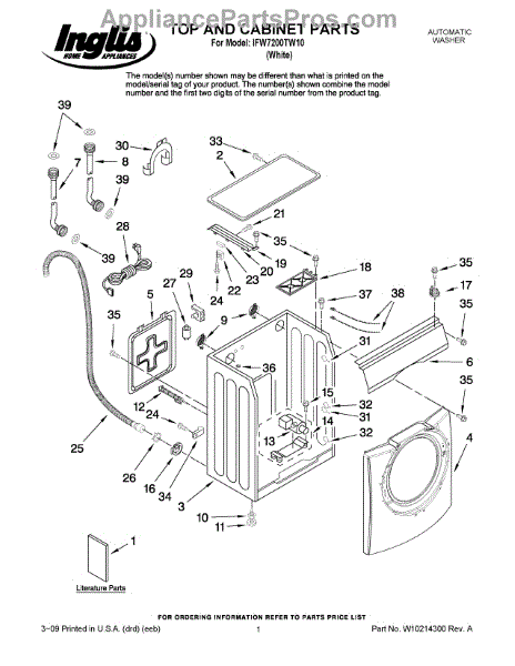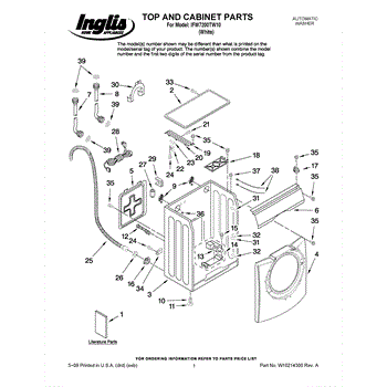 Parts for Whirlpool IFW7200TW10: 01 - Top And Cabinet Parts
