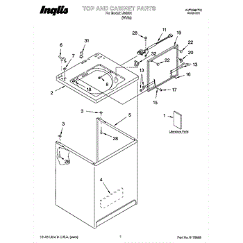 The Washer Lid Screw is an OEM part for Whirlpool washing machines. This 6-32 x .340 screw secures the washer lid to the hinge assembly, ensuring the lid opens and closes smoothly and stays securely in place during operation.