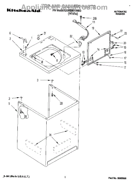 The Washer Lid Screw is an OEM part for Whirlpool washing machines. This 6-32 x .340 screw secures the washer lid to the hinge assembly, ensuring the lid opens and closes smoothly and stays securely in place during operation.