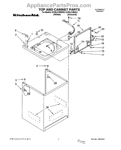 Parts for Kitchenaid KAWL510BAL0: 01 - Top And Cabinet, Lit / Optional Parts