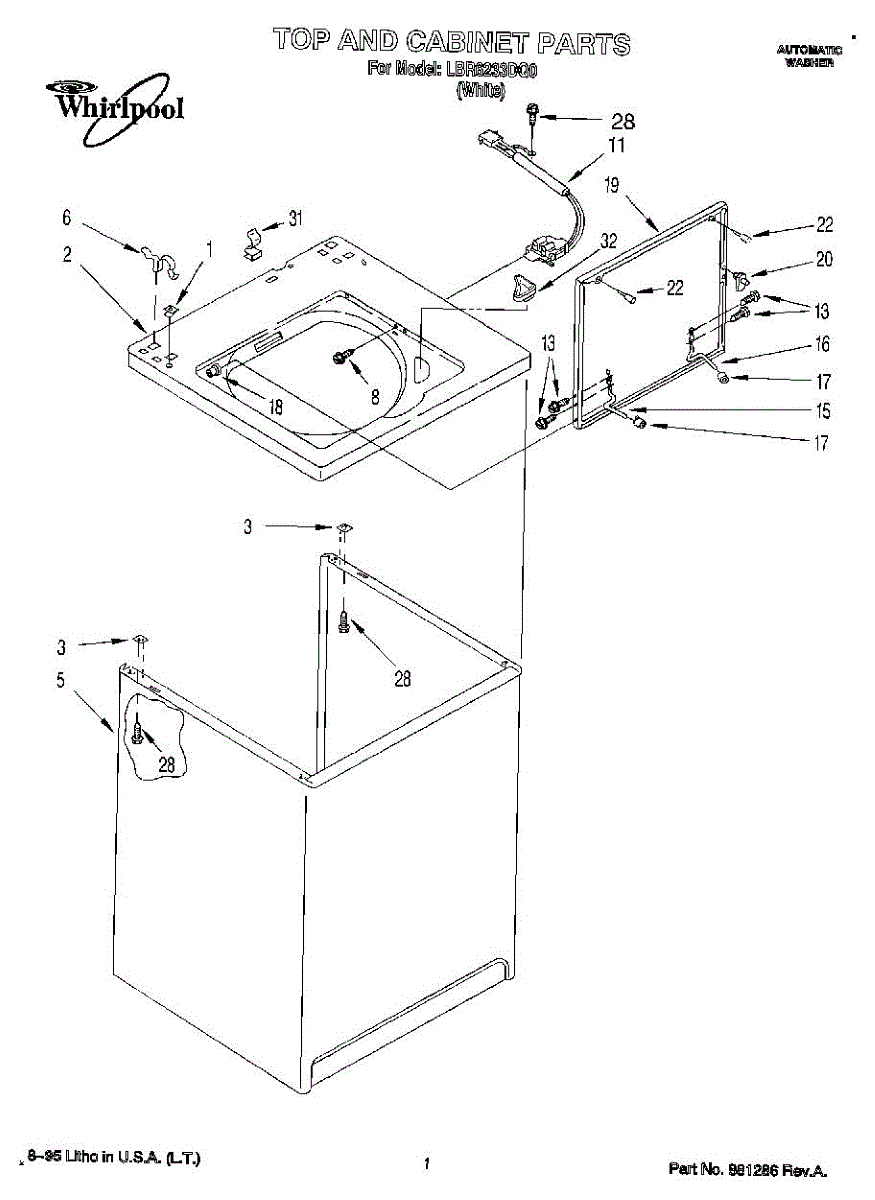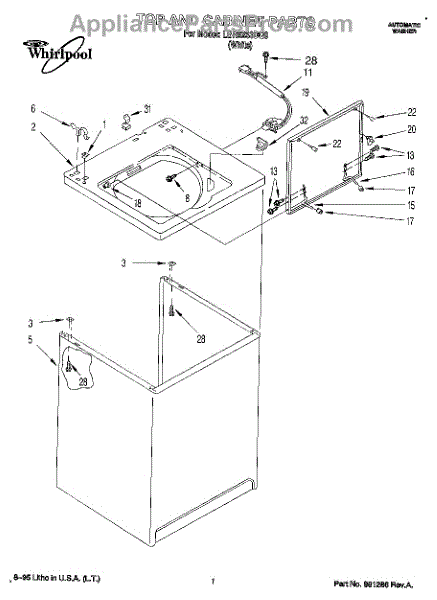 Repair manual for top loading automatic direct drive washing machines made by Whirlpool. Covered brands include Whirlpool, Sears, Kenmore, Kitchen Aid, Roper, and Estate. Easy to follow photographs and step-by-step repair procedures.