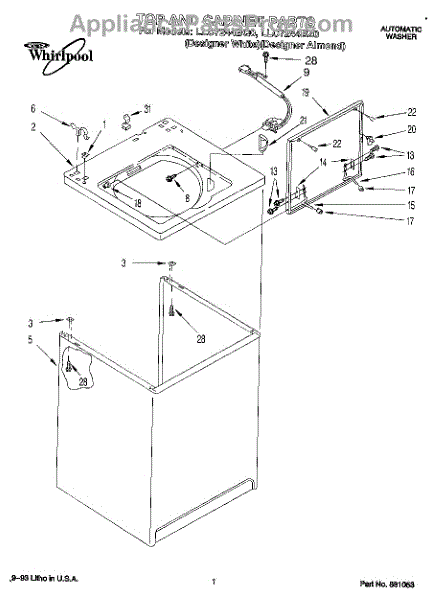 Repair manual for top loading automatic direct drive washing machines made by Whirlpool. Covered brands include Whirlpool, Sears, Kenmore, Kitchen Aid, Roper, and Estate. Easy to follow photographs and step-by-step repair procedures.