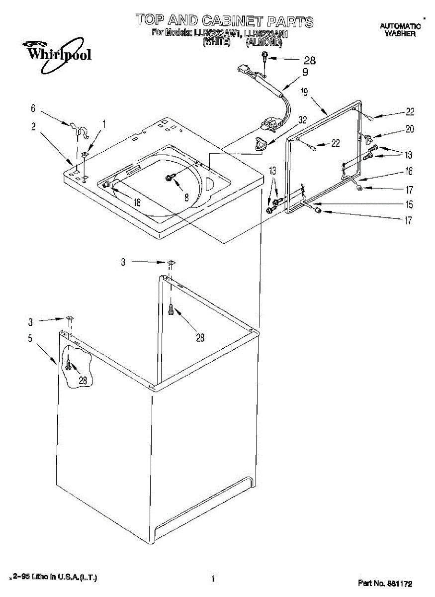 The Washer Lid Screw is an OEM part for Whirlpool washing machines. This 6-32 x .340 screw secures the washer lid to the hinge assembly, ensuring the lid opens and closes smoothly and stays securely in place during operation.