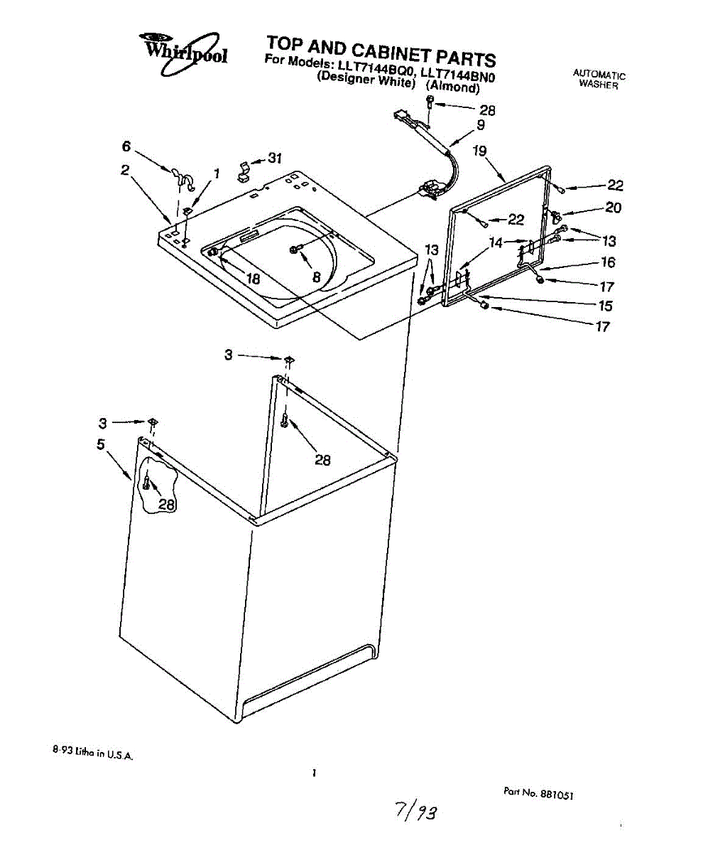 Parts for Whirlpool LLT7144BN0: 01 - Top And Cabinet, Lit / Optional Parts