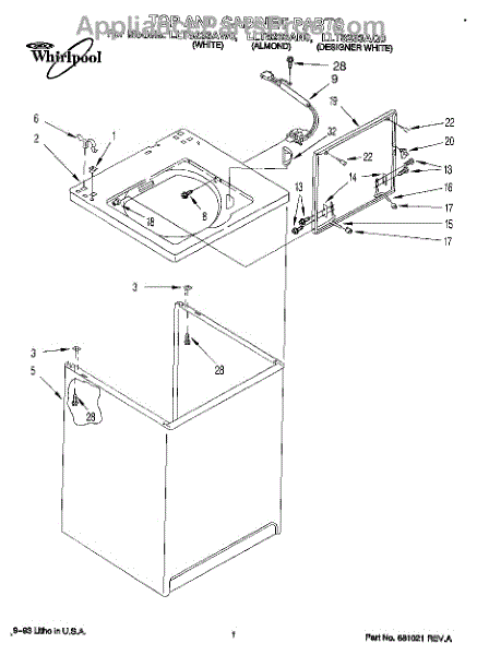 Parts for Whirlpool LLT8233AN0: 01 - Top And Cabinet, Lit / Optional Parts