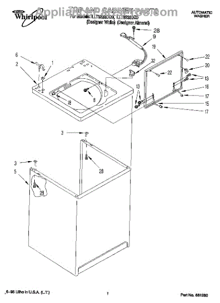 Parts for Whirlpool LLT8233DZ0: 01 - Top And Cabinet, Lit / Optional Parts