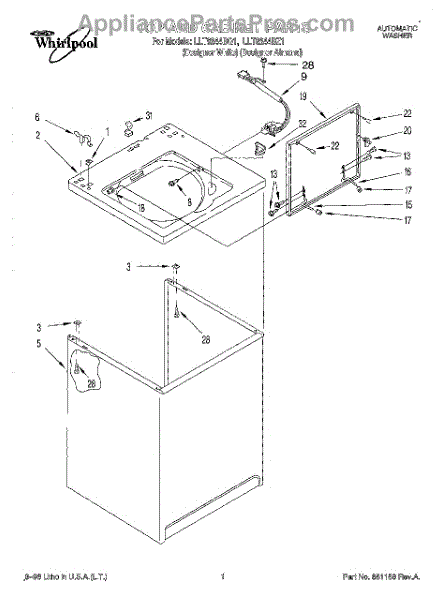 Parts for Whirlpool LLT8244BZ1: 01 - Top And Cabinet, Lit / Optional Parts