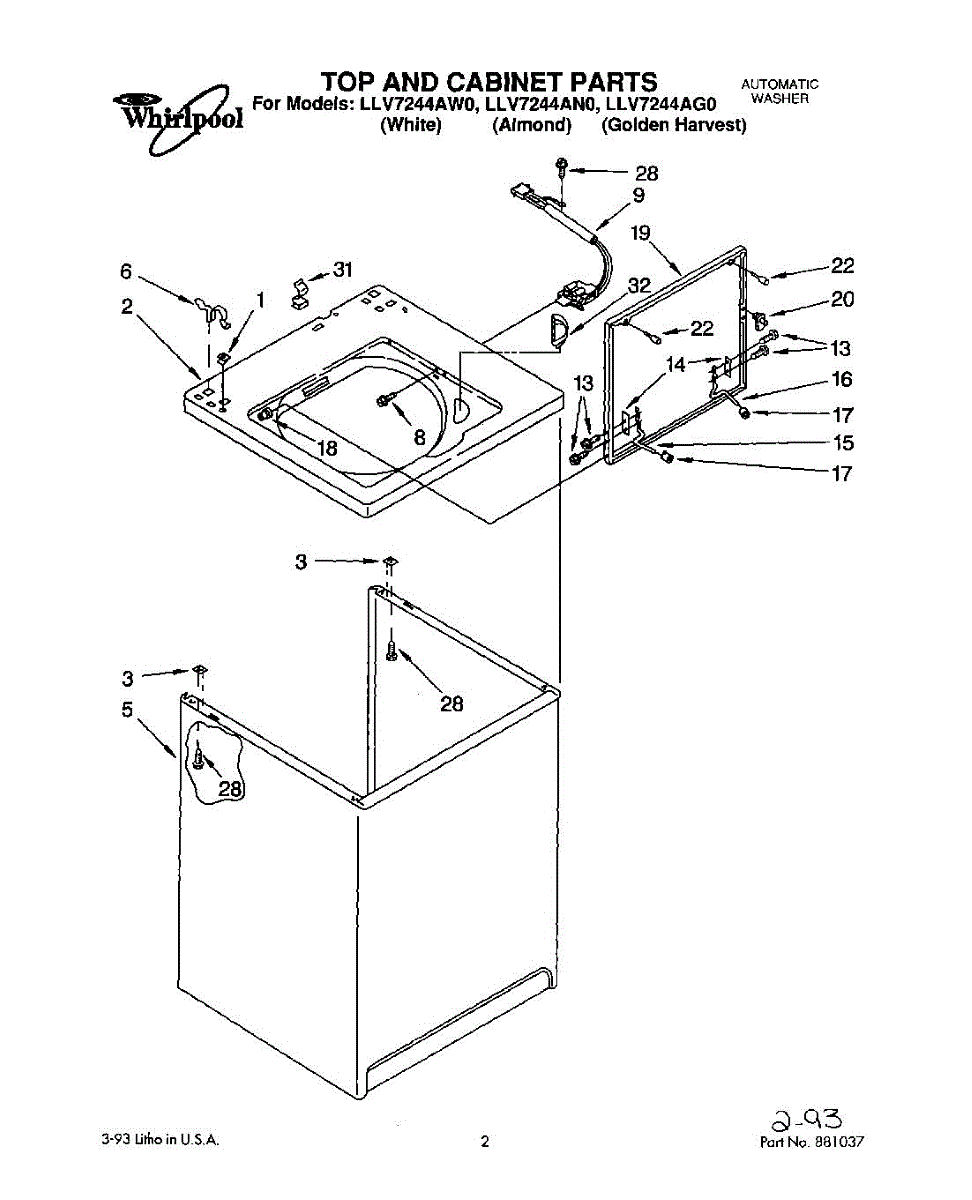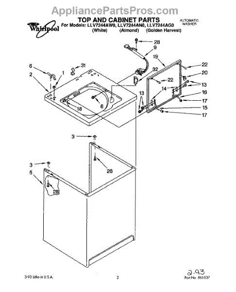 Repair manual for top loading automatic direct drive washing machines made by Whirlpool. Covered brands include Whirlpool, Sears, Kenmore, Kitchen Aid, Roper, and Estate. Easy to follow photographs and step-by-step repair procedures.