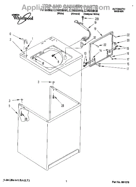 Parts for Whirlpool LLV8233BW0: 01 - Top And Cabinet, Lit / Optional Parts