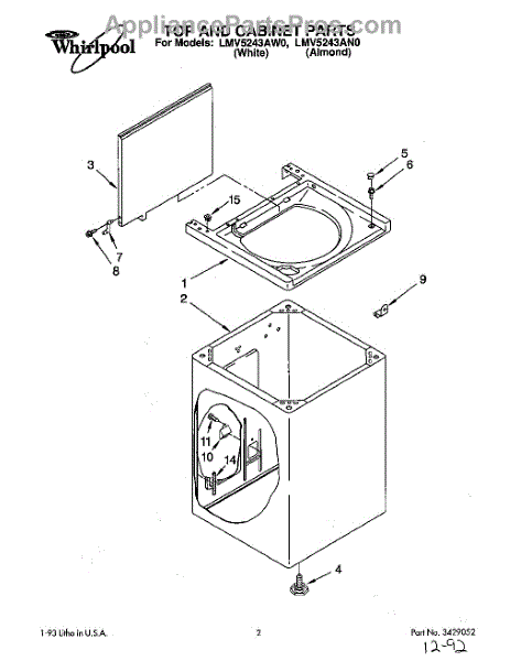Parts for Whirlpool LMV5243AW0: 01 - Top And Cabinet, Lit / Optional Parts