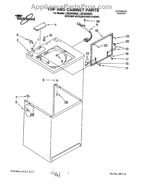 Repair manual for top loading automatic direct drive washing machines made by Whirlpool. Covered brands include Whirlpool, Sears, Kenmore, Kitchen Aid, Roper, and Estate. Easy to follow photographs and step-by-step repair procedures.