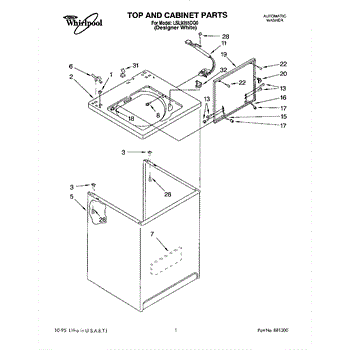 The Washer Lid Screw is an OEM part for Whirlpool washing machines. This 6-32 x .340 screw secures the washer lid to the hinge assembly, ensuring the lid opens and closes smoothly and stays securely in place during operation.