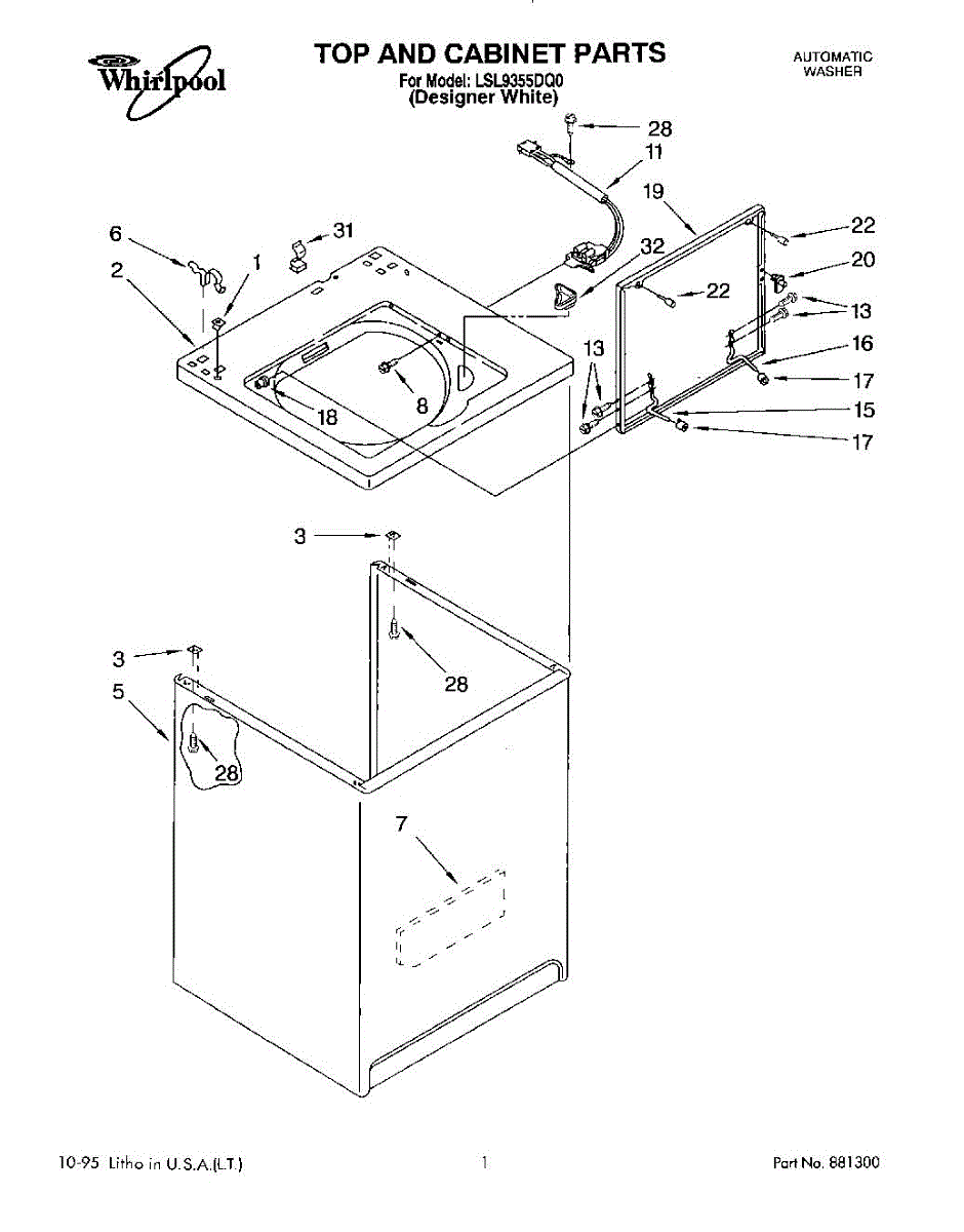 Used to lock washer cabinet to rear wall of washer.