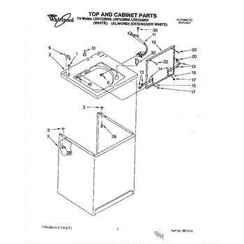 Repair manual for top loading automatic direct drive washing machines made by Whirlpool. Covered brands include Whirlpool, Sears, Kenmore, Kitchen Aid, Roper, and Estate. Easy to follow photographs and step-by-step repair procedures.