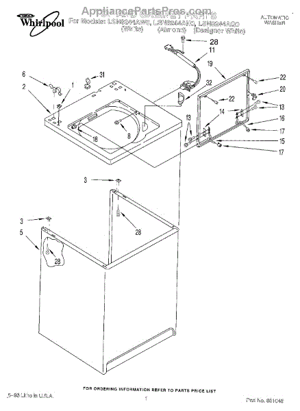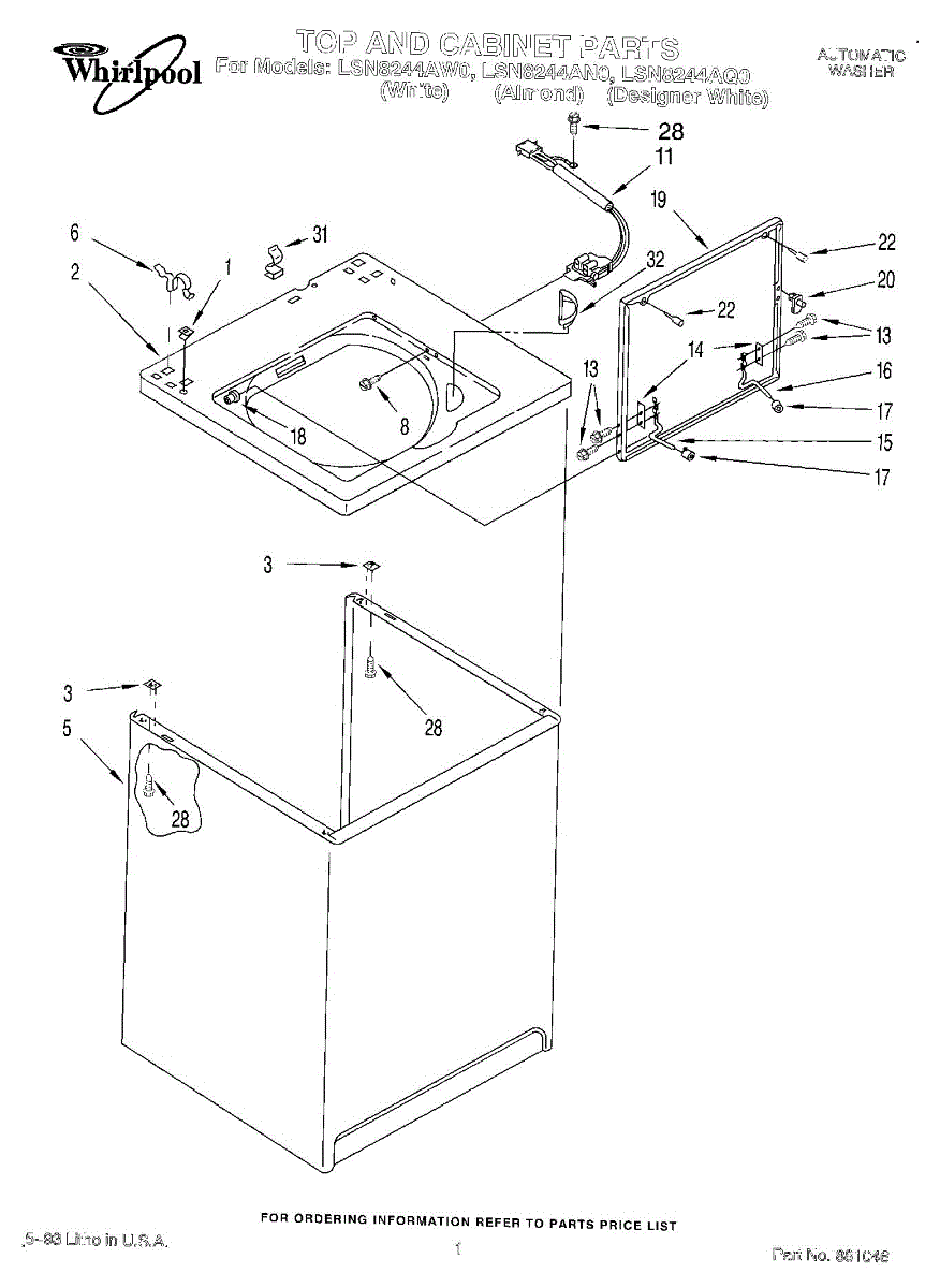 Parts for Whirlpool LSN8244AW0: 01 - Top And Cabinet, Lit / Optional Parts