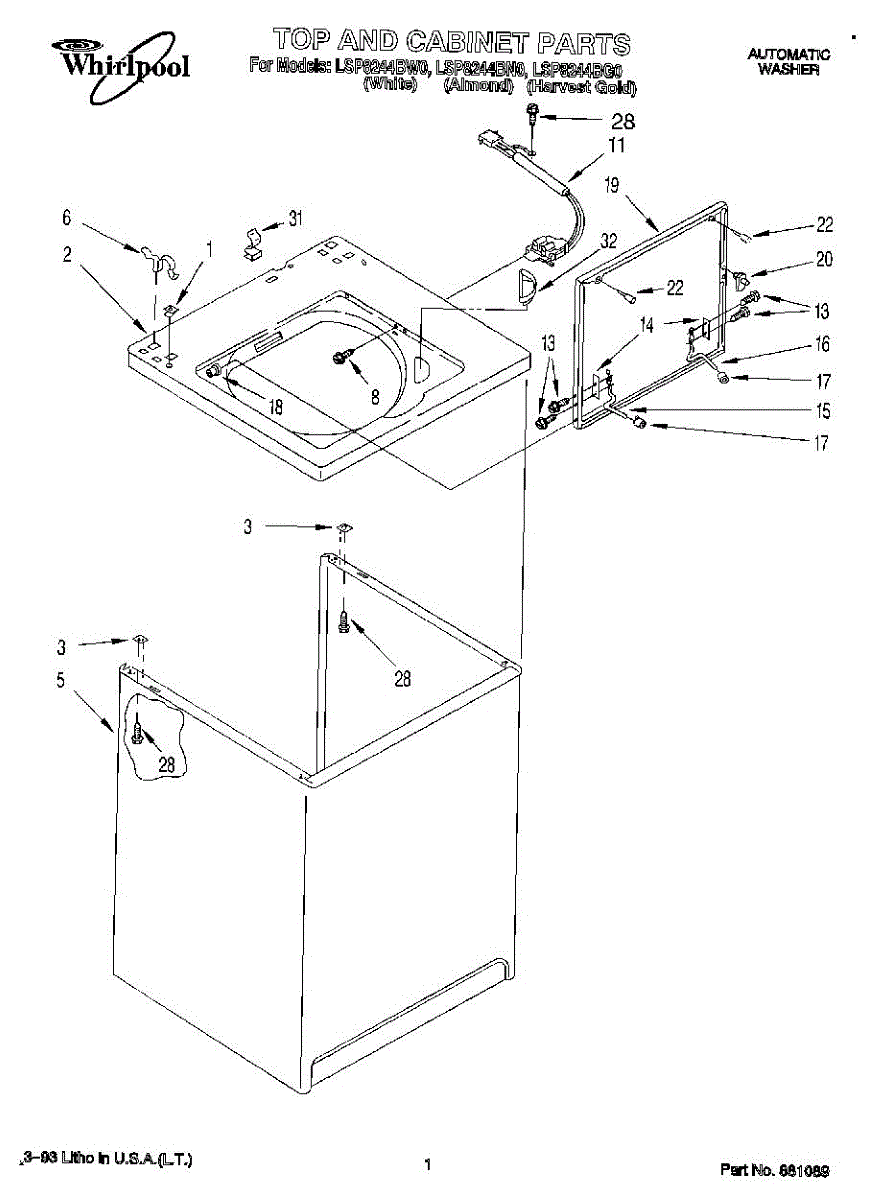 Repair manual for top loading automatic direct drive washing machines made by Whirlpool. Covered brands include Whirlpool, Sears, Kenmore, Kitchen Aid, Roper, and Estate. Easy to follow photographs and step-by-step repair procedures.