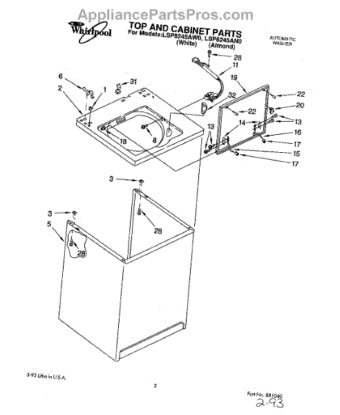 Parts for Whirlpool LSP8245AN0: 01 - Top And Cabinet, Lit / Optional Parts