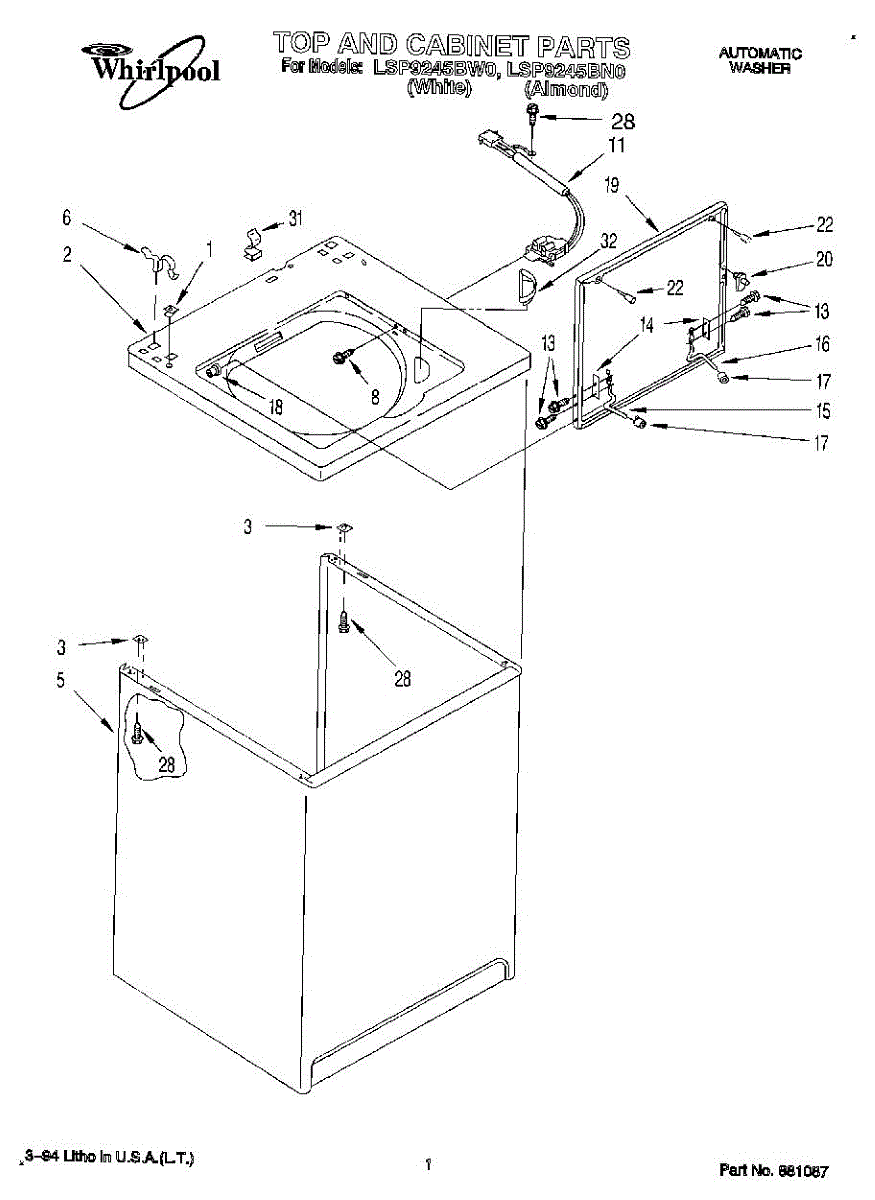 Parts for Whirlpool LSP9245BN0: 01 - Top And Cabinet, Lit / Optional Parts
