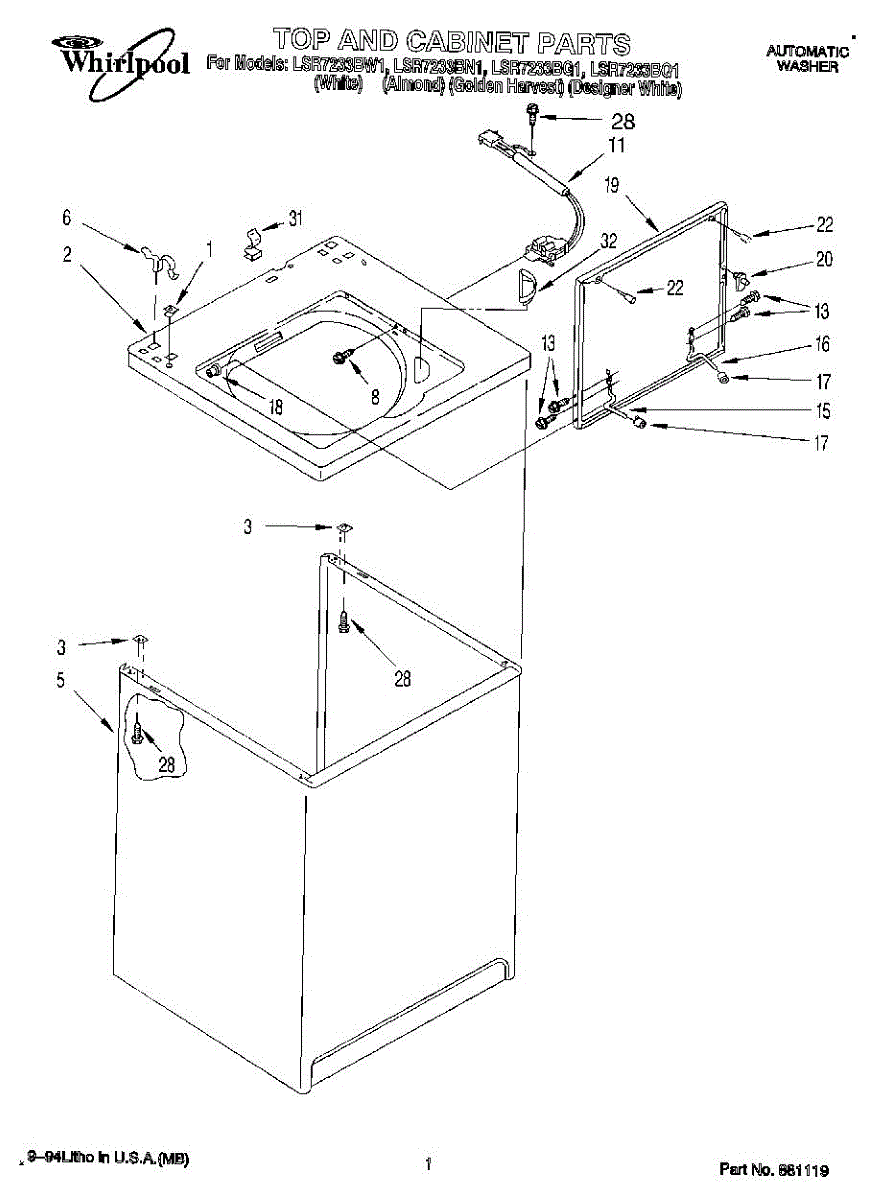 Repair manual for top loading automatic direct drive washing machines made by Whirlpool. Covered brands include Whirlpool, Sears, Kenmore, Kitchen Aid, Roper, and Estate. Easy to follow photographs and step-by-step repair procedures.