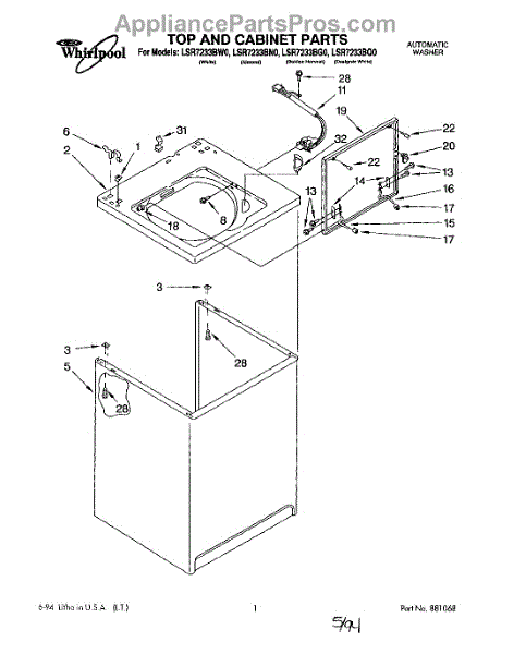 Repair manual for top loading automatic direct drive washing machines made by Whirlpool. Covered brands include Whirlpool, Sears, Kenmore, Kitchen Aid, Roper, and Estate. Easy to follow photographs and step-by-step repair procedures.