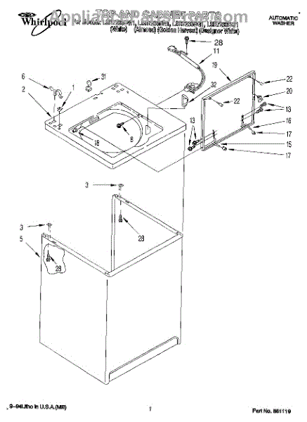 Repair manual for top loading automatic direct drive washing machines made by Whirlpool. Covered brands include Whirlpool, Sears, Kenmore, Kitchen Aid, Roper, and Estate. Easy to follow photographs and step-by-step repair procedures.