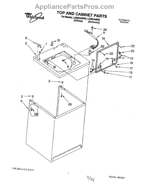 Parts for Whirlpool LSR8244BW0: 01 - Top And Cabinet, Lit / Optional Parts