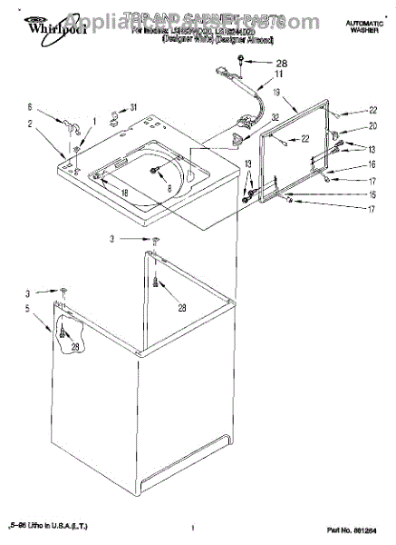 Parts for Whirlpool LSR8244DZ0: 01 - Top And Cabinet, Lit / Optional Parts