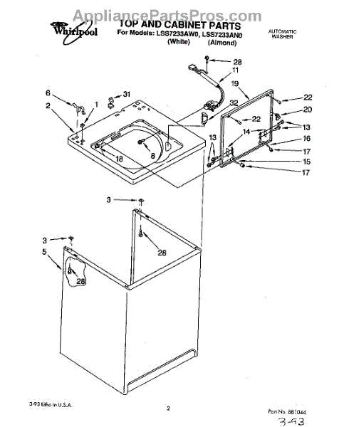 Parts for Whirlpool LSS7233AW0: 01 - Top And Cabinet, Lit / Optional Parts