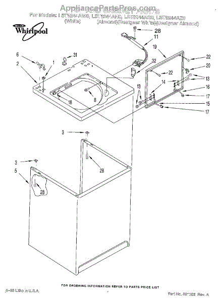 Parts for Whirlpool LST8244AN0: 01 - Top And Cabinet, Lit / Optional Parts