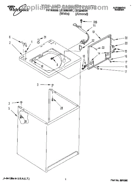 Parts for Whirlpool LST9245BW1: 01 - Top And Cabinet, Lit / Optional Parts