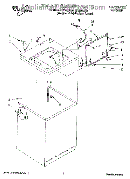 Parts for Whirlpool LST9355BQ0: 01 - Top And Cabinet, Lit / Optional Parts