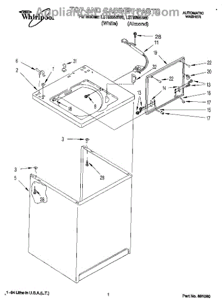 Repair manual for top loading automatic direct drive washing machines made by Whirlpool. Covered brands include Whirlpool, Sears, Kenmore, Kitchen Aid, Roper, and Estate. Easy to follow photographs and step-by-step repair procedures.