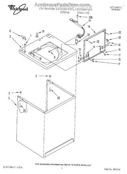 Parts for Whirlpool LSV6234AN0: 01 - Top And Cabinet, Lit / Optional Parts