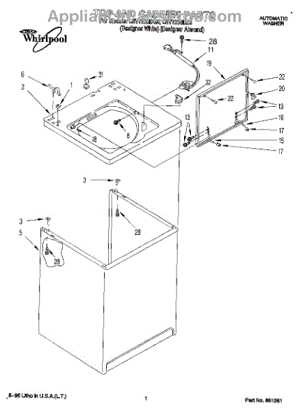 Repair manual for top loading automatic direct drive washing machines made by Whirlpool. Covered brands include Whirlpool, Sears, Kenmore, Kitchen Aid, Roper, and Estate. Easy to follow photographs and step-by-step repair procedures.