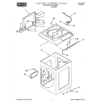 The Washer Lid Screw is an OEM part for Whirlpool washing machines. This 6-32 x .340 screw secures the washer lid to the hinge assembly, ensuring the lid opens and closes smoothly and stays securely in place during operation.