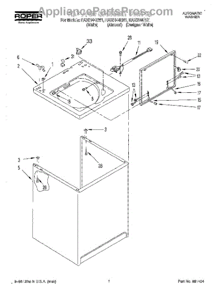 Parts for Whirlpool RAX6144EN1: 01 - Top And Cabinet Parts