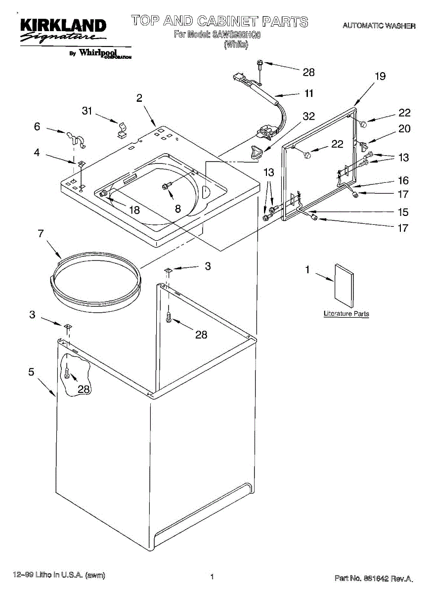 Repair manual for top loading automatic direct drive washing machines made by Whirlpool. Covered brands include Whirlpool, Sears, Kenmore, Kitchen Aid, Roper, and Estate. Easy to follow photographs and step-by-step repair procedures.