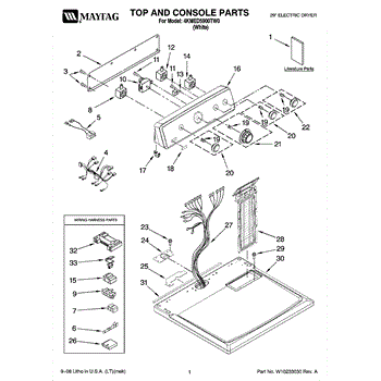 The Console Clip is an OEM part compatible with Whirlpool dryers. This clip secures the control console assembly to the top panel, ensuring it is firmly mounted during operation. Properly functioning clips are necessary to maintain the correct alignment of controls and prevent detachment.