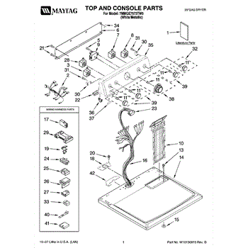 The Console Clip is an OEM part compatible with Whirlpool dryers. This clip secures the control console assembly to the top panel, ensuring it is firmly mounted during operation. Properly functioning clips are necessary to maintain the correct alignment of controls and prevent detachment.