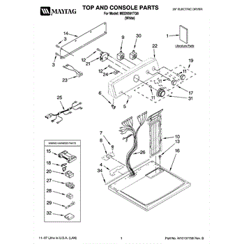The Console Clip is an OEM part compatible with Whirlpool dryers. This clip secures the control console assembly to the top panel, ensuring it is firmly mounted during operation. Properly functioning clips are necessary to maintain the correct alignment of controls and prevent detachment.
