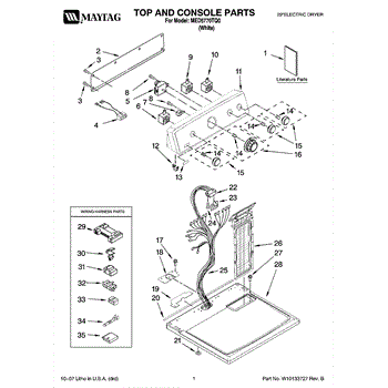 The Console Clip is an OEM part compatible with Whirlpool dryers. This clip secures the control console assembly to the top panel, ensuring it is firmly mounted during operation. Properly functioning clips are necessary to maintain the correct alignment of controls and prevent detachment.