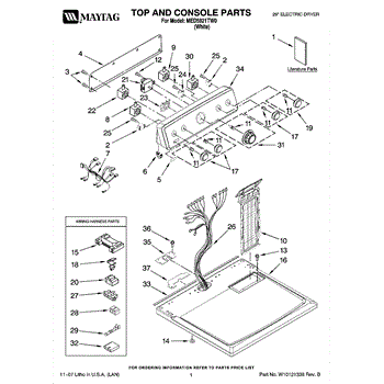 The Console Clip is an OEM part compatible with Whirlpool dryers. This clip secures the control console assembly to the top panel, ensuring it is firmly mounted during operation. Properly functioning clips are necessary to maintain the correct alignment of controls and prevent detachment.