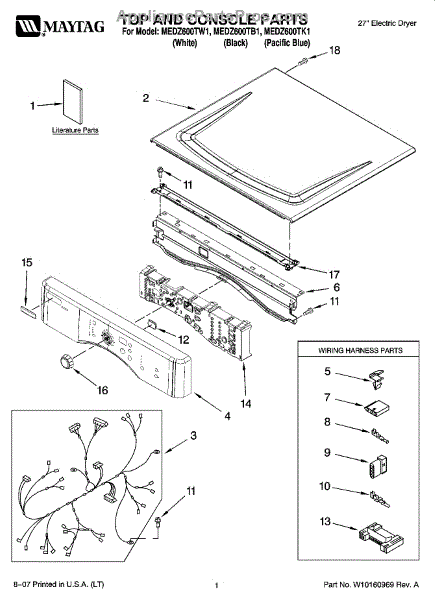 Parts for Maytag MEDZ600TW1: 01 - Top And Console Parts