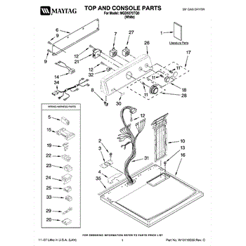 The Console Clip is an OEM part compatible with Whirlpool dryers. This clip secures the control console assembly to the top panel, ensuring it is firmly mounted during operation. Properly functioning clips are necessary to maintain the correct alignment of controls and prevent detachment.