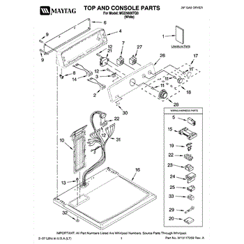 The Console Clip is an OEM part compatible with Whirlpool dryers. This clip secures the control console assembly to the top panel, ensuring it is firmly mounted during operation. Properly functioning clips are necessary to maintain the correct alignment of controls and prevent detachment.