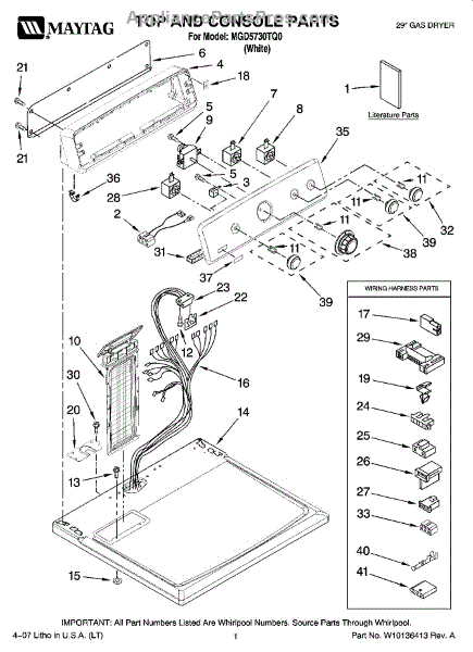 This harness clip secures appliance wiring to the cabinet or components to prevent rubbing, pinching, and interference with moving parts. It keeps wiring routed neatly for reliable operation and reduced risk of abrasion-related failures. What it does: