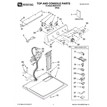 The Console Clip is an OEM part compatible with Whirlpool dryers. This clip secures the control console assembly to the top panel, ensuring it is firmly mounted during operation. Properly functioning clips are necessary to maintain the correct alignment of controls and prevent detachment.