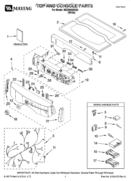 Parts for Maytag MGD9600SQ0: 01 - Top And Console Parts