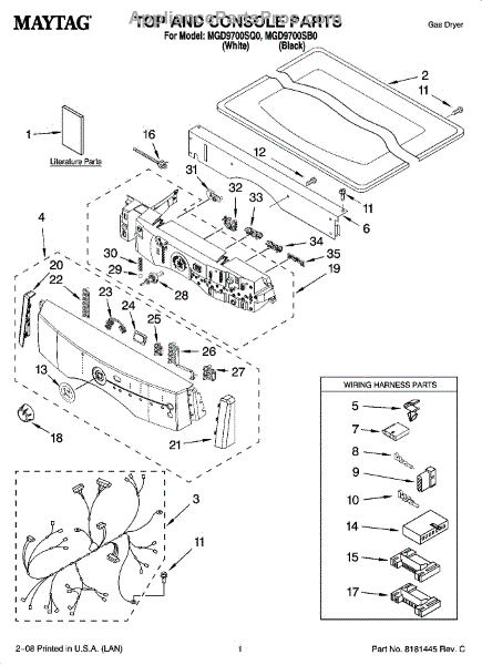 This harness clip secures appliance wiring to the cabinet or components to prevent rubbing, pinching, and interference with moving parts. It keeps wiring routed neatly for reliable operation and reduced risk of abrasion-related failures. What it does: