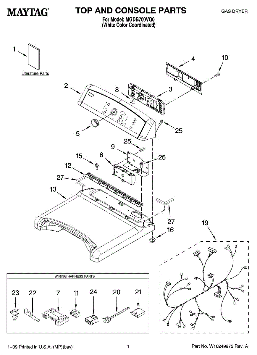 Complete wire harness assembly that routes power and control signals throughout your dryer. Replaces damaged, frayed, or burnt wiring harnesses.